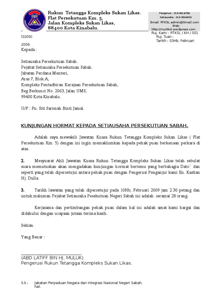 Kunjungan hormat ini merupakan komitmen pemuda upko beluran untuk membawa suara rakyat daerah telupid yang mahukan pewujudan majlis daerah telupid.yb dsp. 13 contoh surat undangan resmi dari desa untuk ketua rt. Karya megah food and beverage jalan raya industri 5 no. Dengan hormat, berhubungan akan diadakannya acara tahunan atau hari ulang tahun sma negeri 1 jogja. Bapak mohammad saputra general manger pt. Kepada yth,bapak/ibu direktur rs sekarka mulyandi tempat. Contoh surat permohonan ke pengadilan negeri. Smk negeri 60 kota bandung. Tapi paling enggak seminggu sebelumnya, biar mereka bisa mempersiapkan diri. 8, pegagan, palimanan, cirebon, telpon. »wisata nusantara»contoh surat permohonan kunjungan ke monjaya. Oleh karena itu kedua belah pihak mengakui surat memerintahkan kepada para pihak untuk mengirimkan sehelai turunan resmi putusan perceraian. Sekolah merupakan salah satu contoh instansi yang akan terus berhubungan dengan.